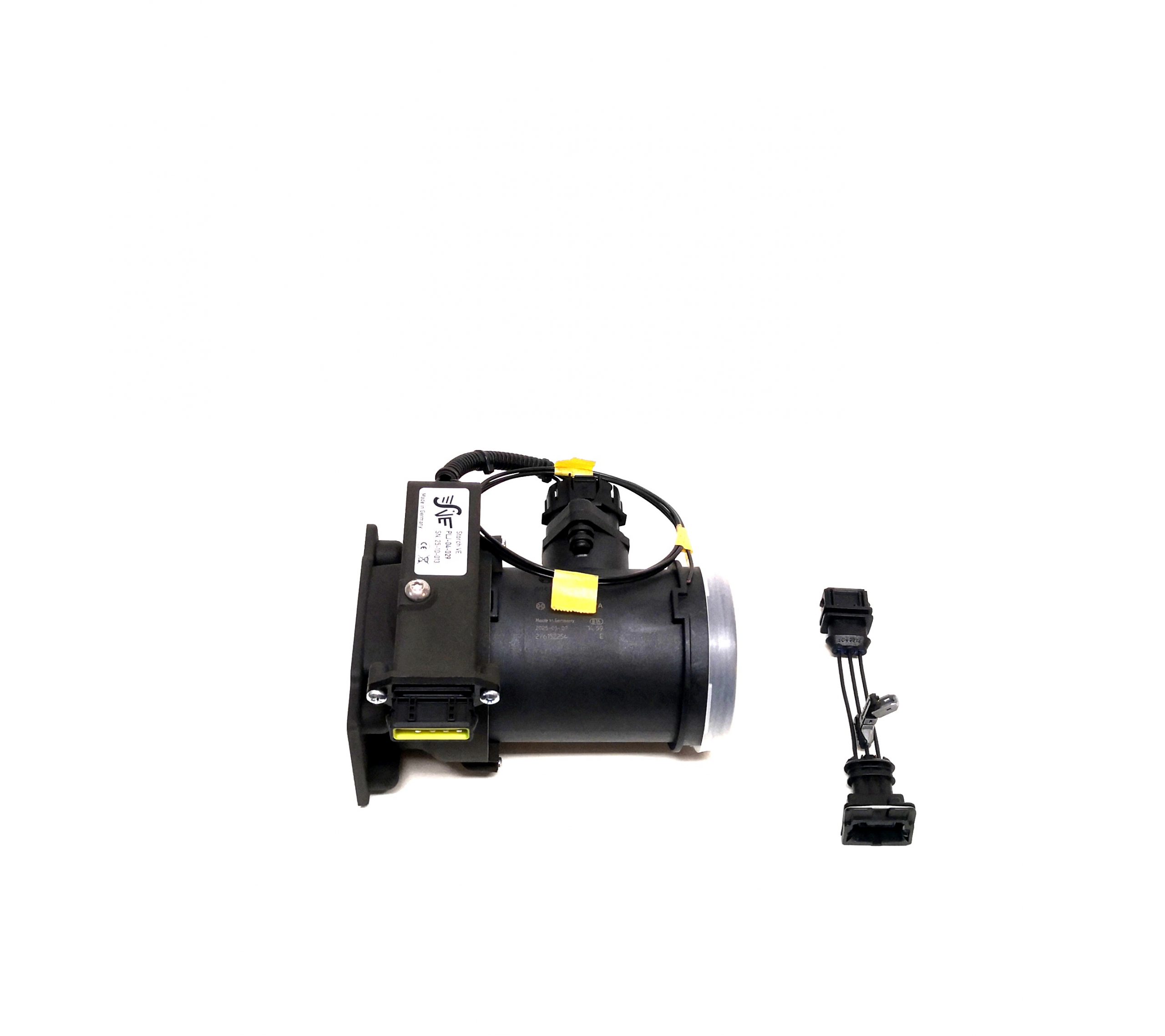 Plug-and-Play-Ersatz für den originalen Luftmengenmesser. Passend für alle Porsche 944S und 944S2. Die Luftmassenmesser der PLJ-Serie verfügen gegenüber dem serienmäßig verbauten Luftmengenmesser über keine Stauklappe, sondern messen den Luftstrom nach dem Heißfilmprinzip. Dadurch steht der Ansaugluft stets ein erheblich größerer Querschnitt zur Verfügung. Es kommt somit in Kombination mit der schnellen, modernen Auswerteelektronik zu einer Mehrleistung. Dem Motorsteuergerät werden zu keiner Zeit verfälschte Werte übermittelt, weshalb es zu keiner erhöhten Belastung der Motorkomponenten kommt. Die Luftmassenmesser haben identische Einbaumaße wie die Serien-Luftmengenmesser und können einfach statt diesem verbaut werden. Für die notwendige 12V-Versorgung liegt ein fahrzeugspezifischer Kabelbaumadapter bei.