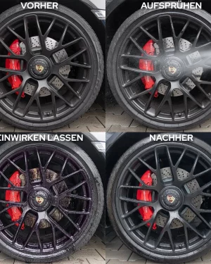 Premium Felgenreiniger (500ml) von KULT, ph-neutral (7, materialschonend). Die Mission bei der Entwicklung des KULT Felgenreinigers war eine extrem gute, mit säurehaltigen Felgenreinigern vergleichbare Performance bei absoluter Materialverträglichkeit zu erzielen. Daher ist der Felgenreiniger neben Alufelgen in Glanz und Matt auch für Chrom und polierte Felgen geeignet.