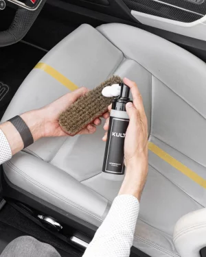 Dank der pH-neutralen Formel greift der Reiniger die schützende TopCoat-Schicht nicht an und trägt somit seinen Teil zum Werterhalt Ihres Porsches bei. Der feine Reinigungsschaum entfernt aktiv Verschmutzungen, Fette, Staub und Gerüche aus dem Leder, ohne das Material unnötig zu belasten oder zu beschädigen. Die speziellen Inhaltsstoffe sind auf die besonderen Eigenschaften von Leder aller Art abgestimmt, um eine intensive und vollkommen materialschonende Reinigung zu gewährleisten. Egal ob echtes original Glattleder, Alcantara, Kunstleder, Wildleder, RaceTex, vollnarbiges oder narbenkorrigiertes Leder – der KULT Lederreiniger ist für alle Lederarten geeignet.